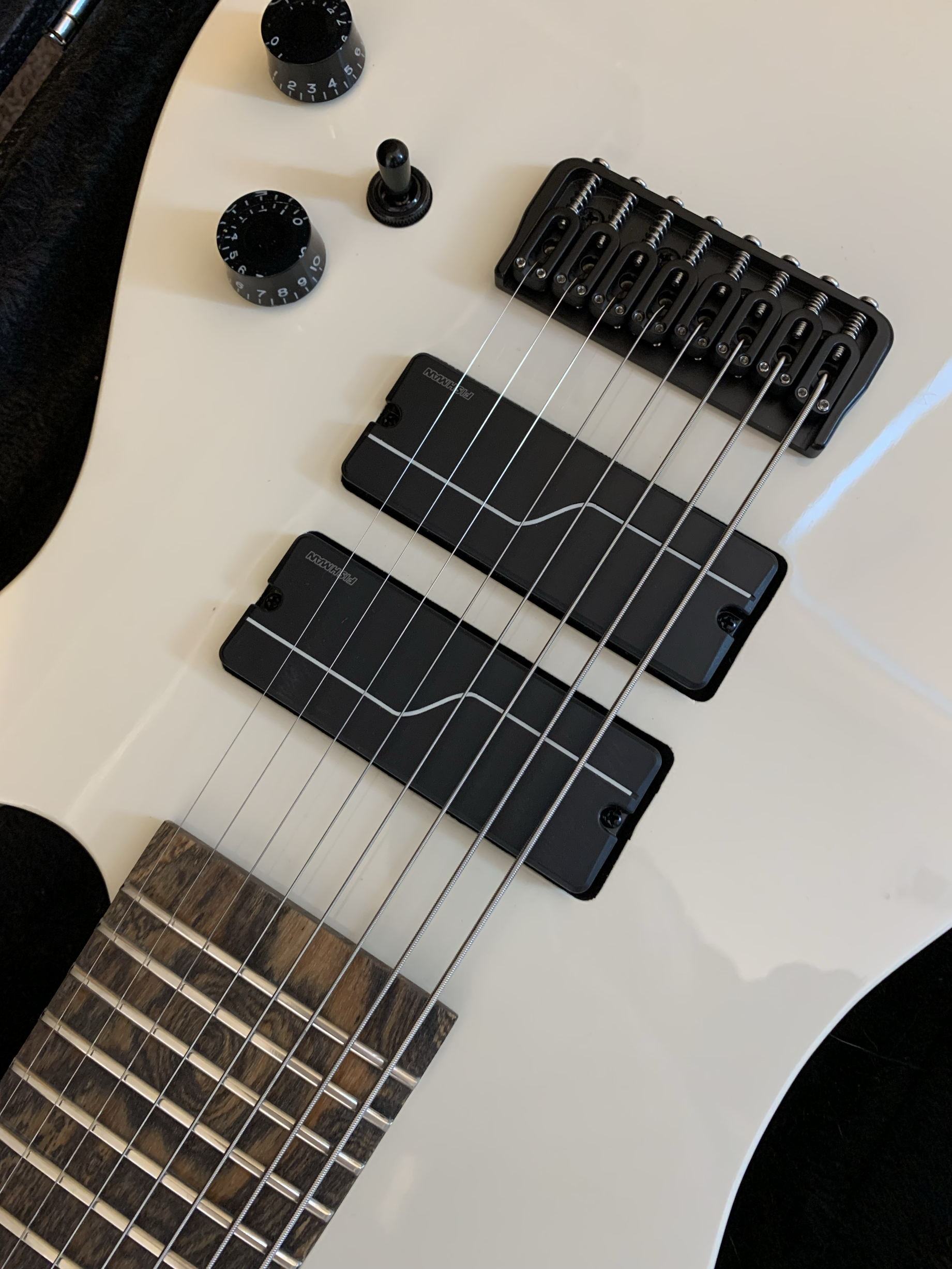 The Atlantean 8 String in Wimbledon White is a beast to be wielded with extreme caution as it is quick to melt faces! Don’t worry about your strings going limp on you for those low notes… The 27″ scale allows for some seriously deep tuning. The Stephen Carpenter Signature Fishman Pickups provide a wonderfully complex range of tonal beauty from extreme metal to jazz and everything in between!