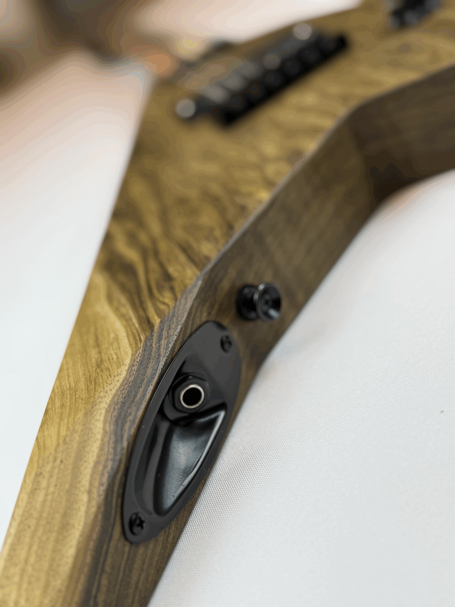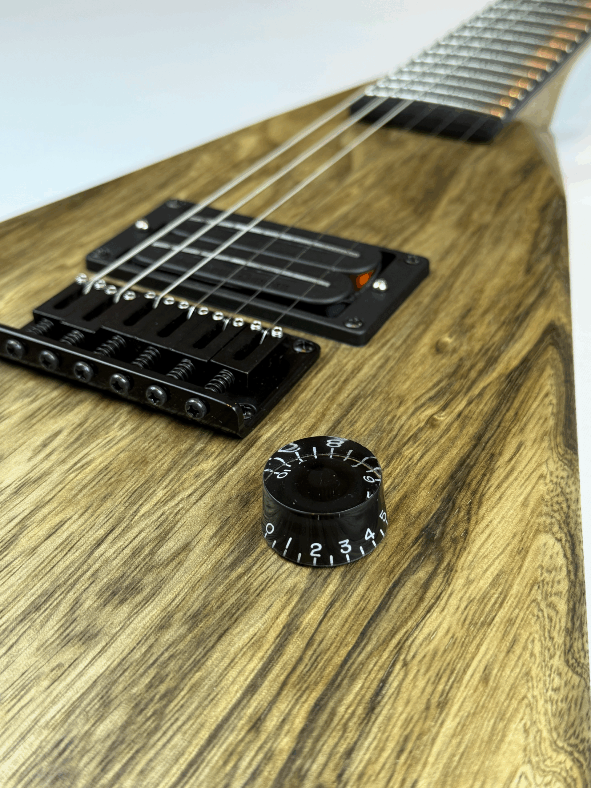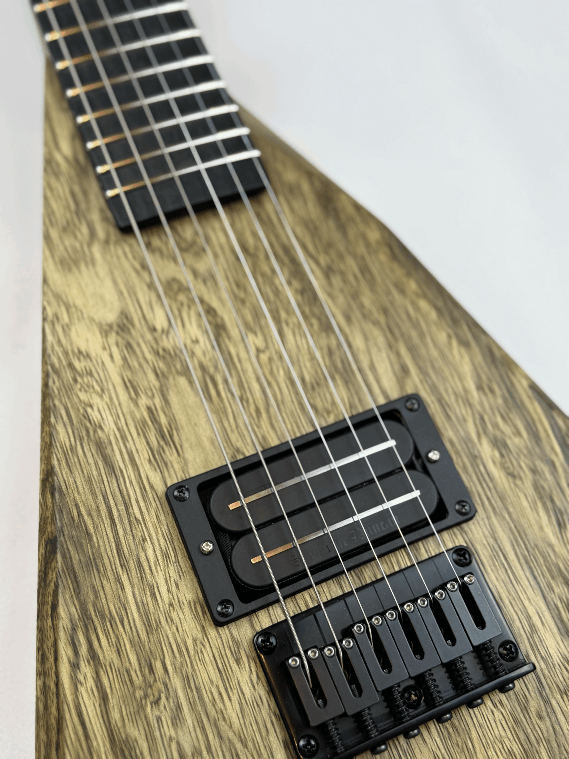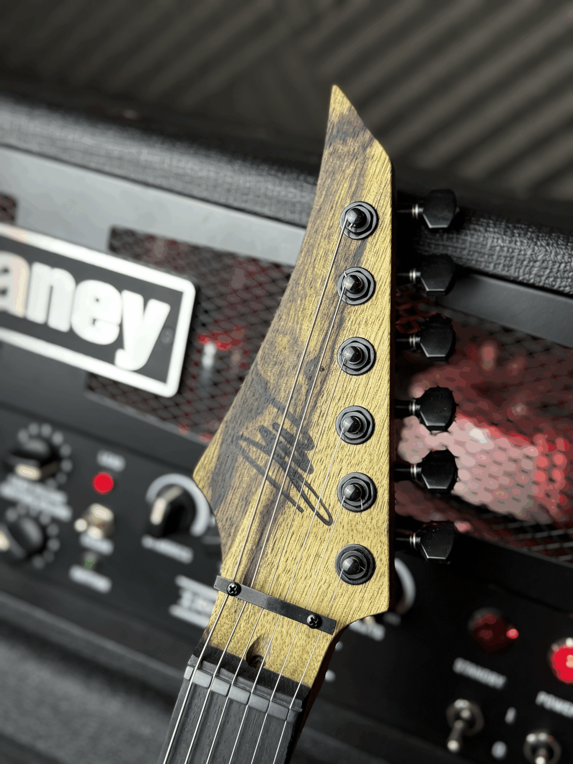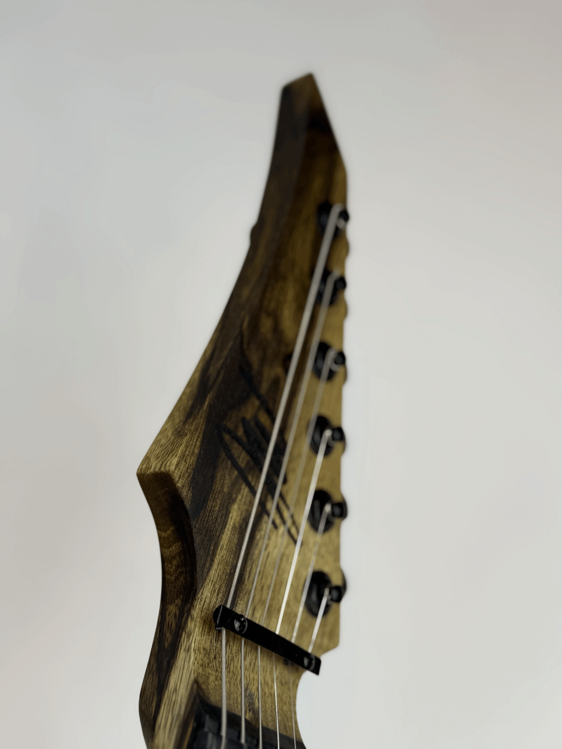 Nothing says heavy metal like branding your mark in flame. The headstock bears the Jon Wade Guitars insignia burned in with a custom-forged branding iron, leaving a scorched emblem worthy of a barbarian king’s war axe.