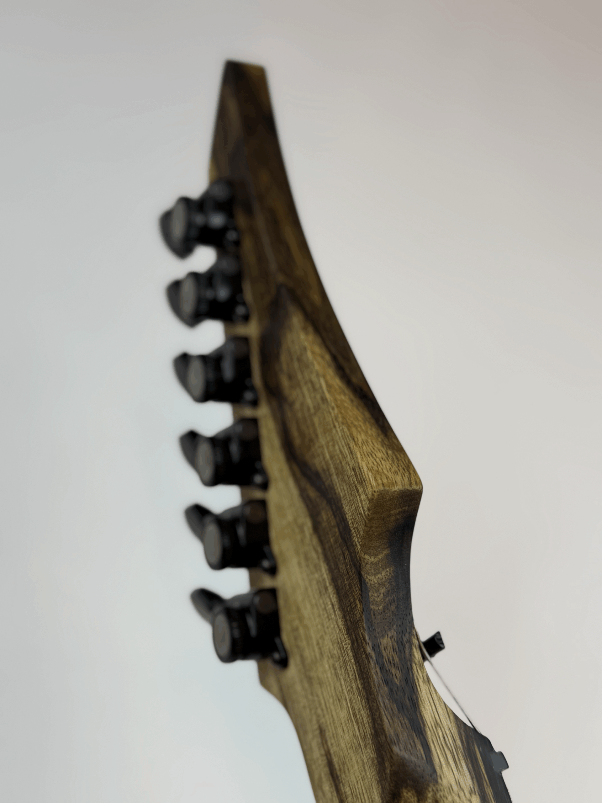 Where the original King Slayer explodes with mutant inspired colors, this version strikes with the primal force of nature itself. Carved from a single solid piece of black limba, paired with a black limba neck and a royal blackwood fretboard, this guitar is equal parts elegance and savagery. Finished in a hand-rubbed oil to preserve the natural grain, every inch of this instrument feels alive—organic, unrestrained, and ready for war.